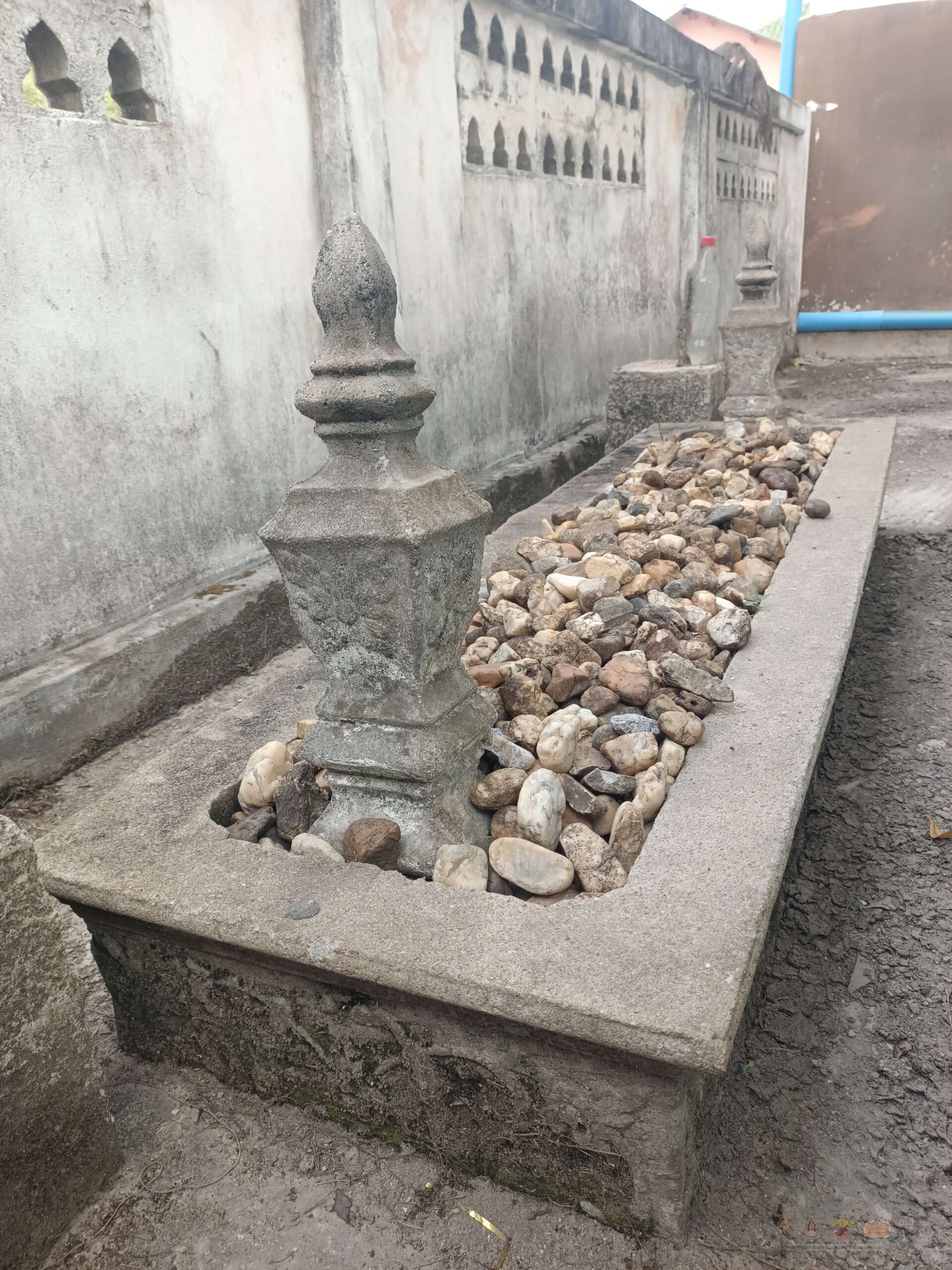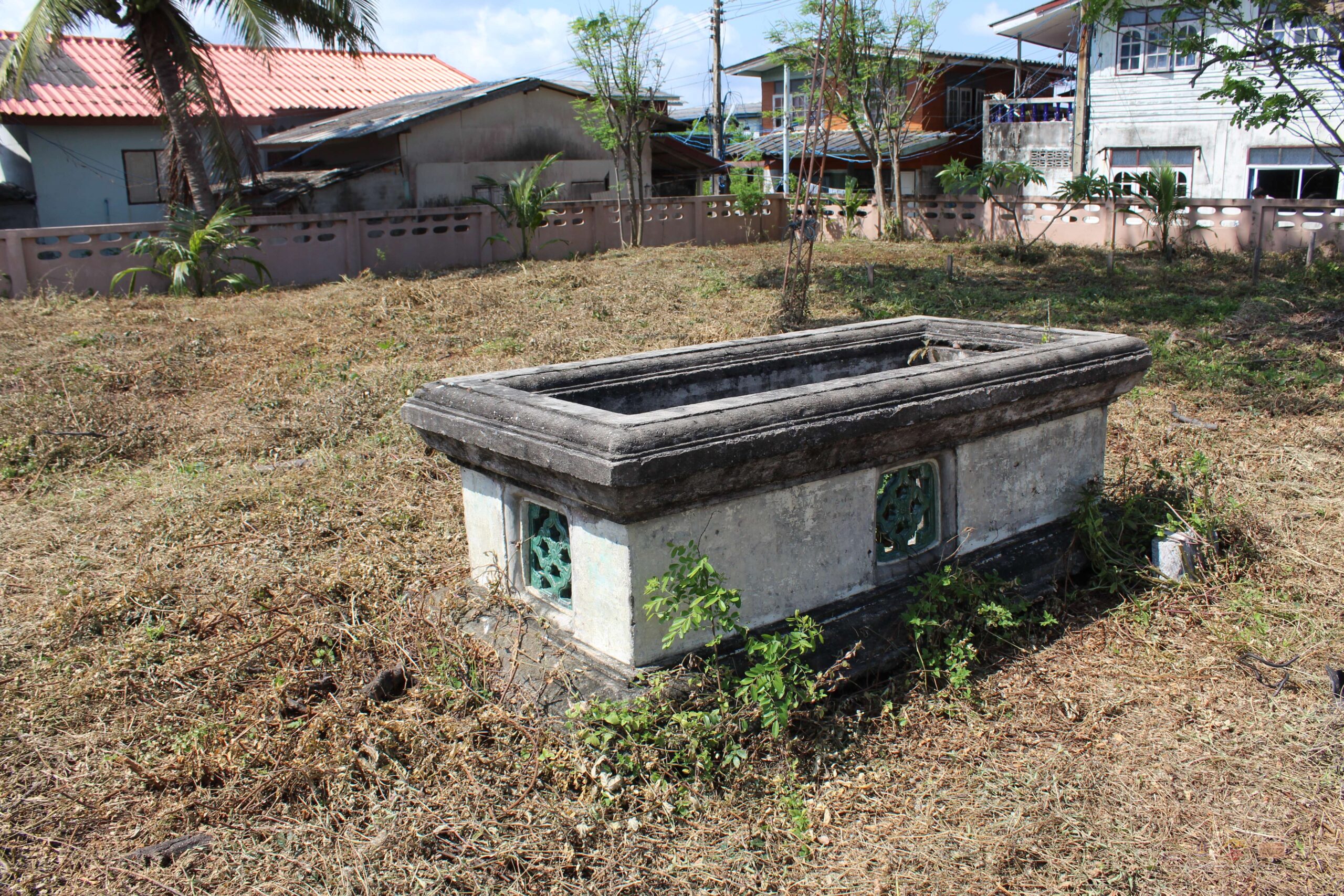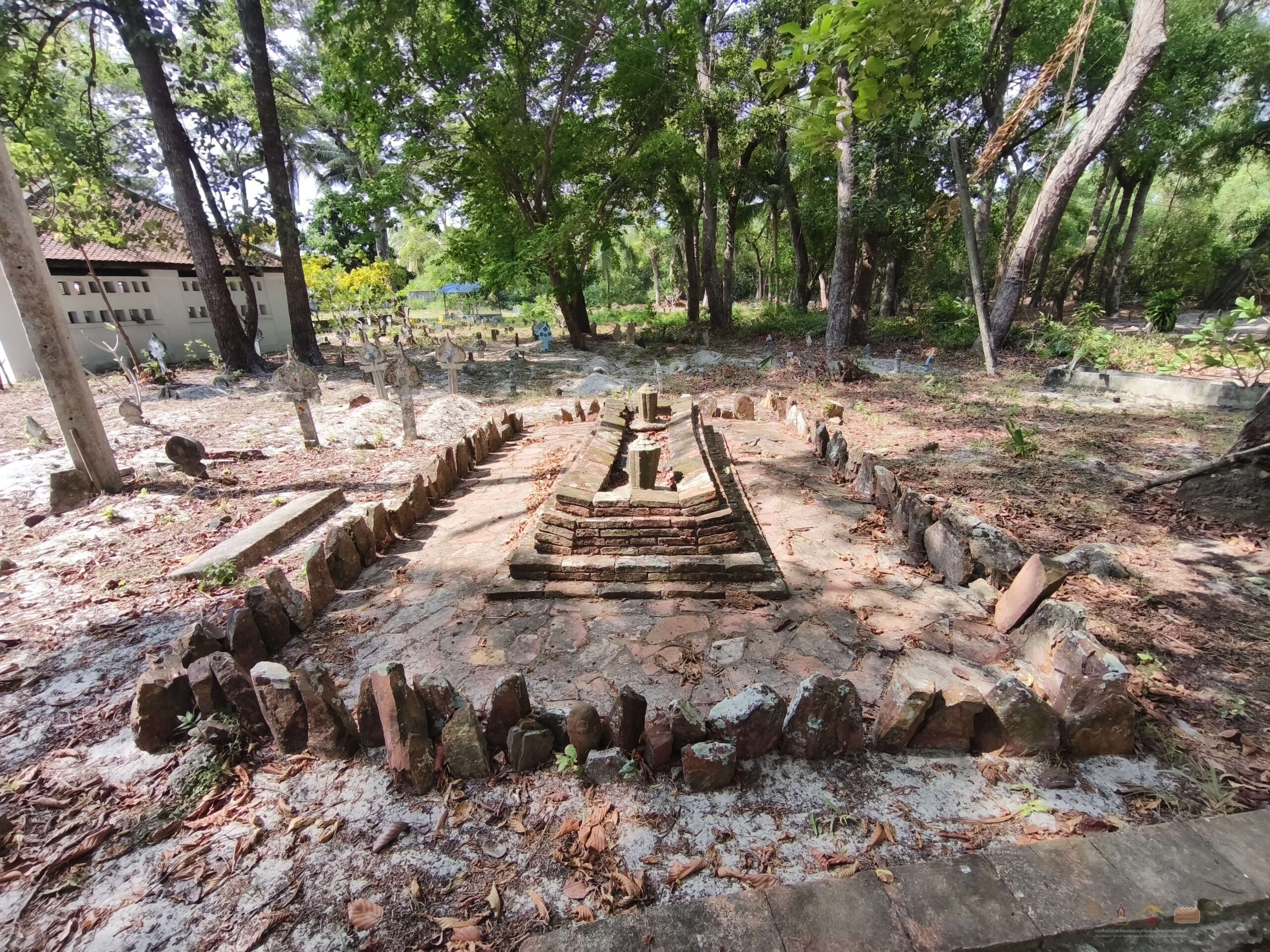 เขื่อน มะก่อม รอ ก่อนอ ในลุ่มน้ำทะเลสาบสงขลา หลุมฝังศพของบุคคลสำคัญเช่น ชนชั้นผู้ปกครอง โต๊ะครู โต๊ะอีหม่าม เป็นต้น มักจะก่อแท่นขึ้นมามีทั้งที่ทำจากไม้ หิน อิฐ ปูน มีรูปแบบทางศิลปกรรมที่สวยงาม บางหมู่บ้านจะเรียกว่า เขื่อน มะก่อม รอ หรือก่อนอ แตกต่างกันไป